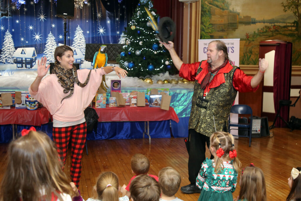 Niesamowitą popularnością wśród najmłodszych cieszyło się tzw. malowanie twarzy i robienie dziecięcych tatuaży. Maluchy mogły też otrzymać ulubioną bajkową postać zrobioną z balonów, a także spróbować waty cukrowej. Była również ulubiona przez dzieci pizza i ciasto, a także bigos i smażone kiełbaski dla ich rodziców. Ogromną furorę zrobił magik, który przez prawie godzinę czarował dzieci swoimi sztuczkami. Maluchy były zachwycone nie tylko jego pokazem, ale również gołębiami, papugą i przede wszystkim wężami, które miał ze sobą. Wiele z nich chętnie zakładało je na swoje szyje i pozowało do zdjęć. Jego pokaz wywoływał różnego rodzaju emocje, od śmiechu i radości, poprzez zdziwienie i podziw, aż po delikatne, krótkotrwałe przerażenie u niektórych maluchów. Tak było m.in. w momencie gdy magik zamienił gołębia w trzy węże. Jednak szybko wszystko wróciło do normy i dzieci z wielkim zainteresowaniem podziwiały kolejne triki magika. Po jego pokazie wszyscy bawili się na parkiecie przy świąteczno-tanecznej muzyce, którą serwował DJ Robert z zespołu The Masters. Po chwili pląsów z wolontariuszkami – Marleną Sokół i Emilią Felkner – maluchy zaczęły wywoływać Świętego Mikołaja, który wraz z kilkunastoma elfami dźwigającymi ciężkie prezenty pojawił się na sali.