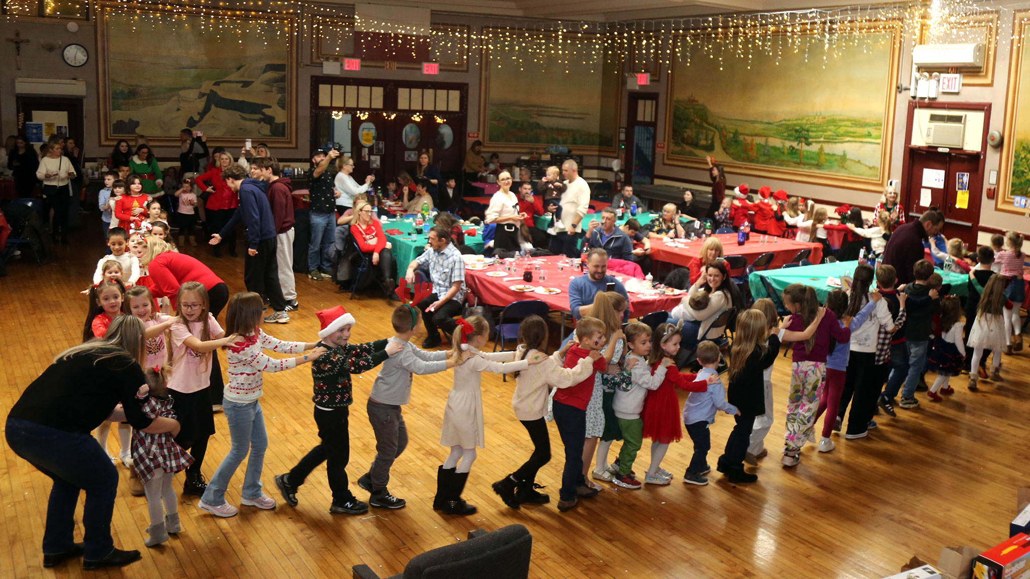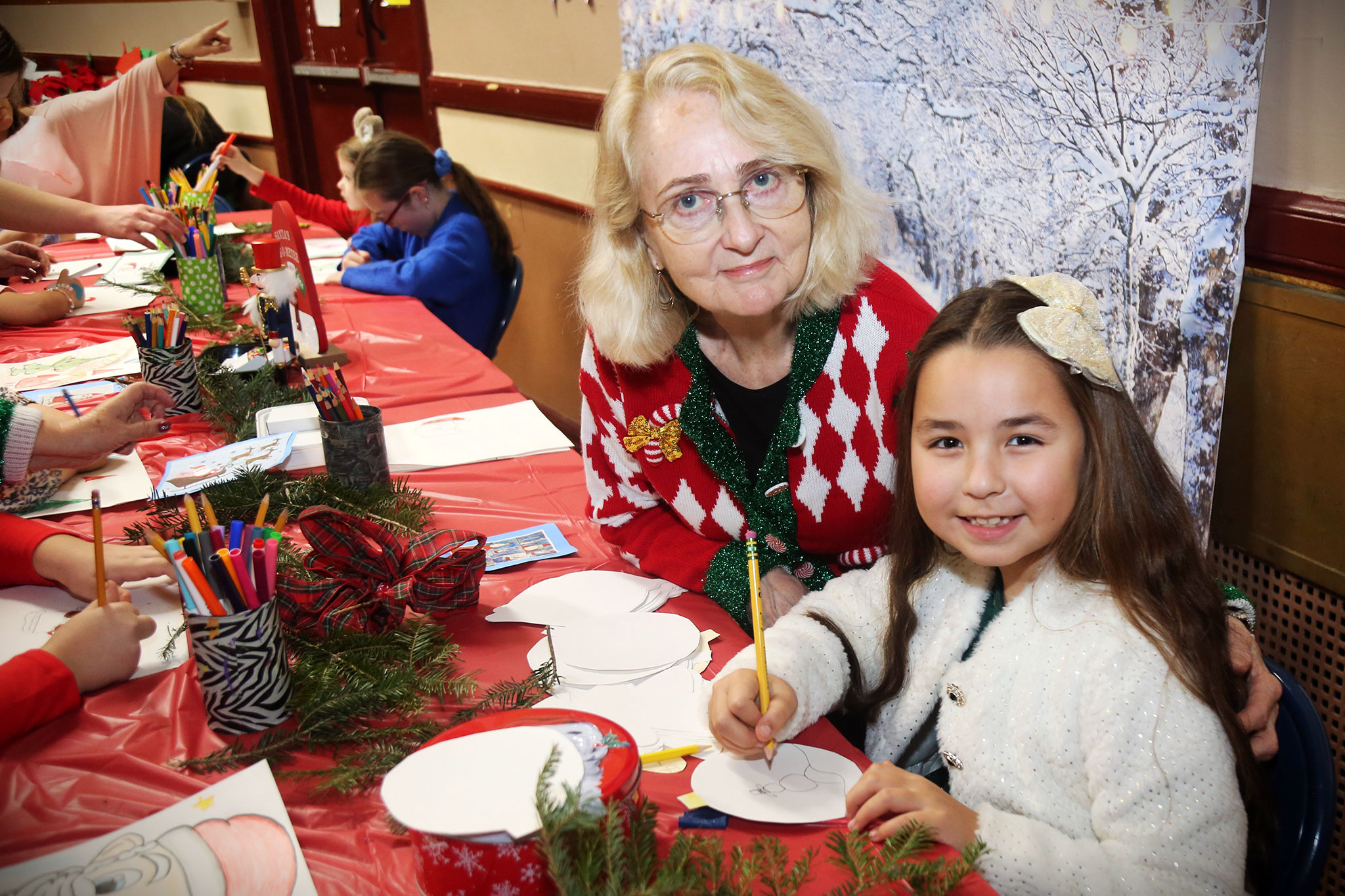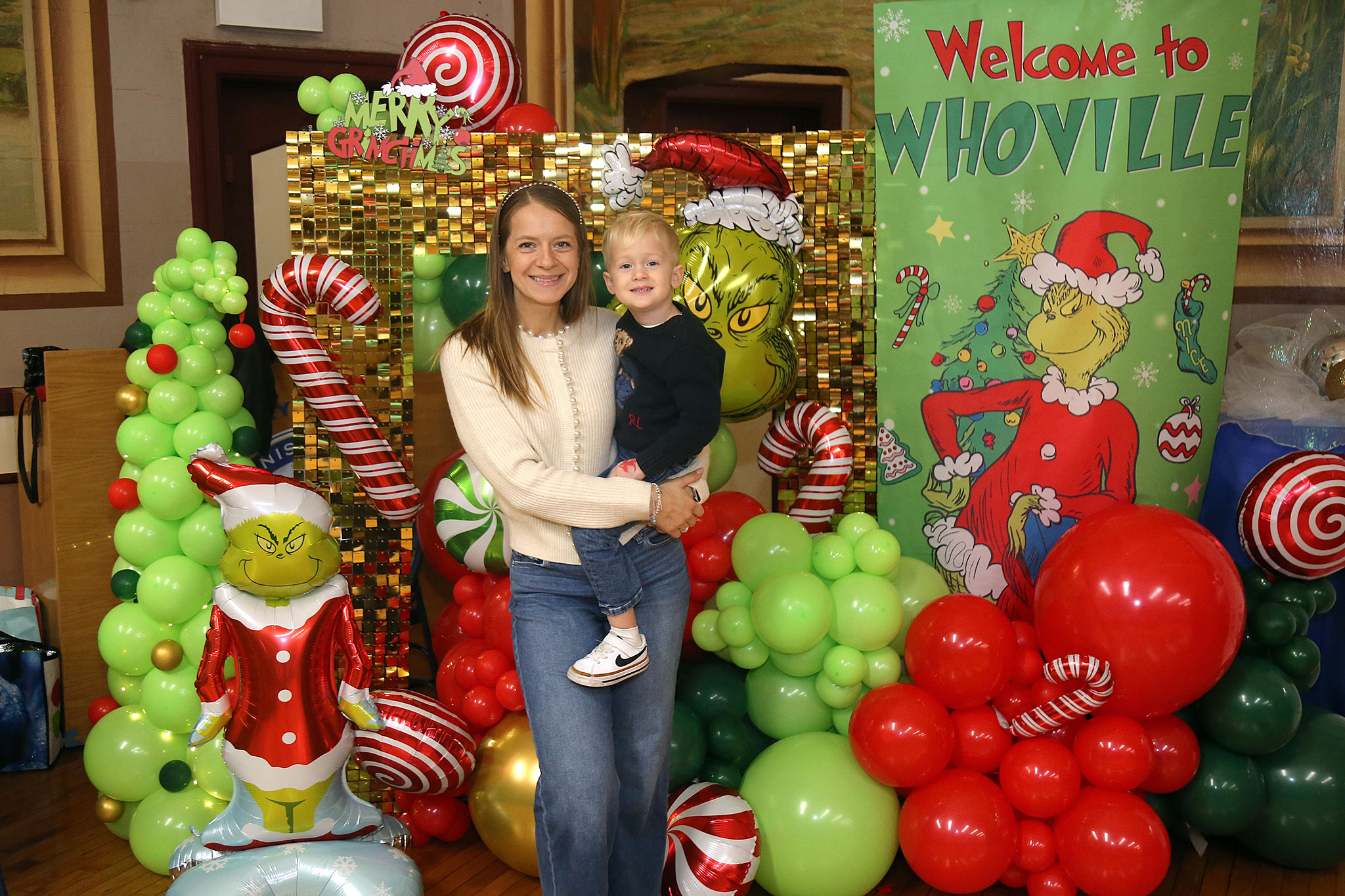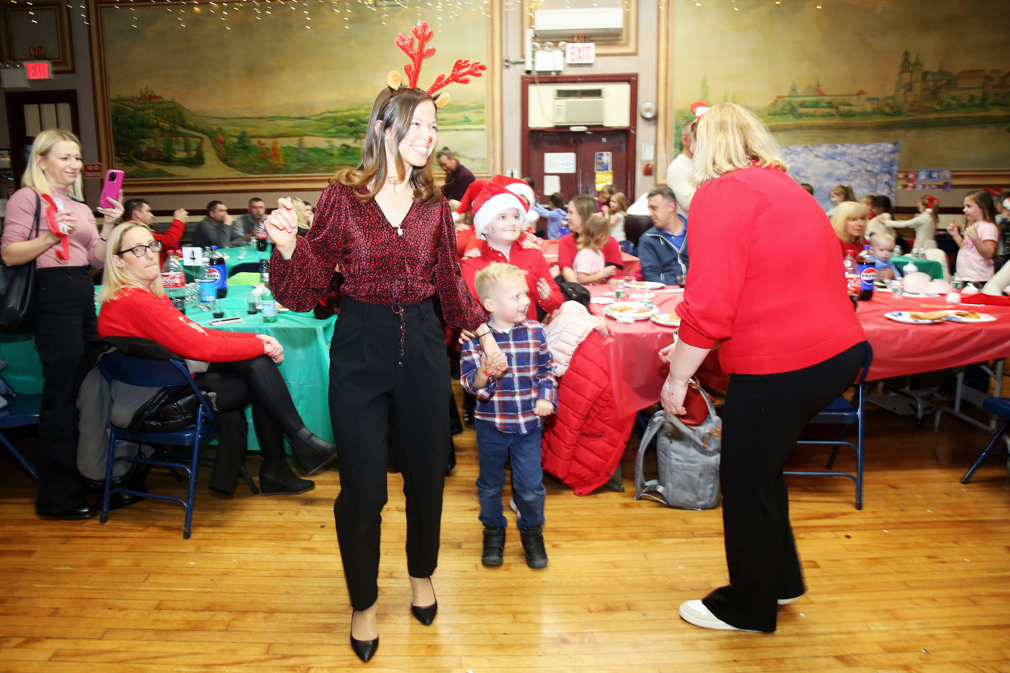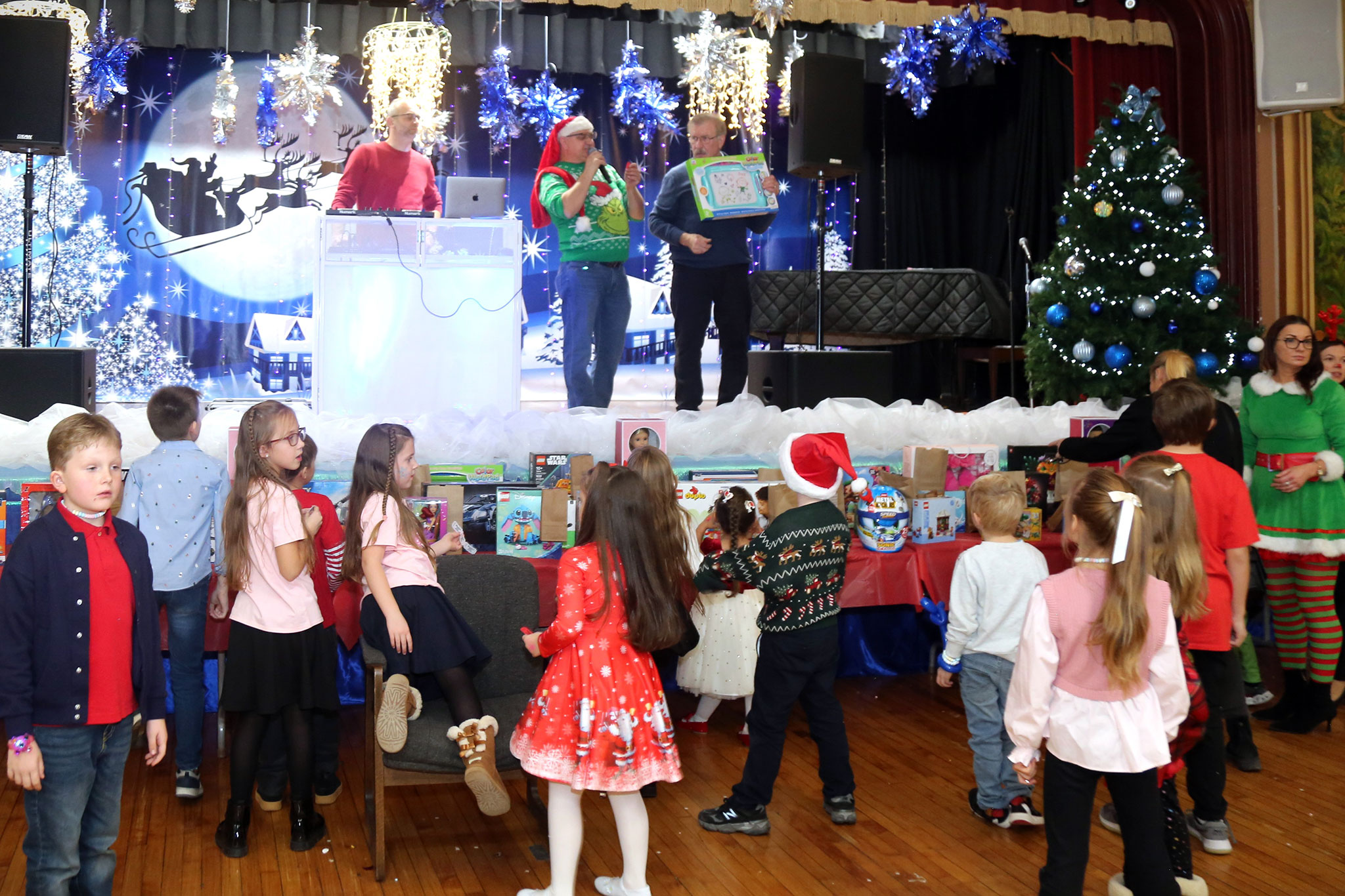 Okazało się, że on również uwielbia zabawę i dołączył do dzieci. Szybko zrobił tzw. pociąg i po kilkukrotnym przemierzeniu całej sali zatrzymał się na stacji, którą był ogromny fotel przeznaczony właśnie dla niego. Późnej emocje sięgnęły zenitu bowiem rozpoczęło się wręczanie prezentów i robienie sobie wspólnych zdjęć. Trwało to ponad godzinę, po czym Święty Mikołaj znów zaczął szaleć na parkiecie wraz z maluchami. Gdy wszyscy opadli z sił, przed sceną zebrała się spora grupa dzieci, które wcześniej brały udział w konkursie plastycznym “Rysunek z Mikołajem” przeprowadzonym przez Krystynę Pitułę i Martę Śmigielską. Cieszył się on ogromnym zainteresowaniem i miał bardzo wysoki poziom. Najciekawsze i najładniejsze prace zostały nagrodzone upominkami. Otrzymali je: Mia Kurylak, Rozalia Łaźnia i Amelia Zygmunt (grupa 4- i 5-latków), Dominik Bańka, Zoe Rostek, Sofia Ochua i Amelia Łaźnia (grupa 6- i 7-latków) oraz Emily Warchoł, Julia Zygmunt i Maya Niedbała (grupa powyżej 8 lat).
